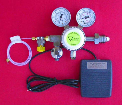 microINJECTORTM 系統(tǒng)配置了的壓力調(diào)節(jié)器,和一個高速的轉(zhuǎn)換電磁閥,性能強勁,操作簡單。不到一秒的時間內(nèi),可以開始與停止注射,控制被注入物質(zhì)的量。電子腳控踏板解放了雙手,更好的專注于操作。